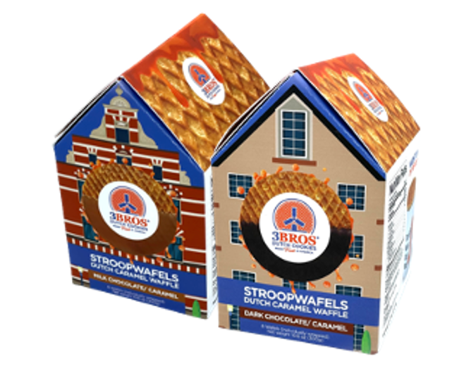 Our scrumptious, classic caramel stroopwafels dipped in fine Belgian chocolate are perfect for the gift-giving season! Includes 6 milk chocolate and 6 dark chocolate-dipped stroopwafels that are individually wrapped. They come in boxes reminiscent of Amsterdam Canal Houses built centuries ago. Enjoy the cookies and collect the Canal House Boxes! This gift box contains festive crinkle paper and a ribbon for a beautiful gift.